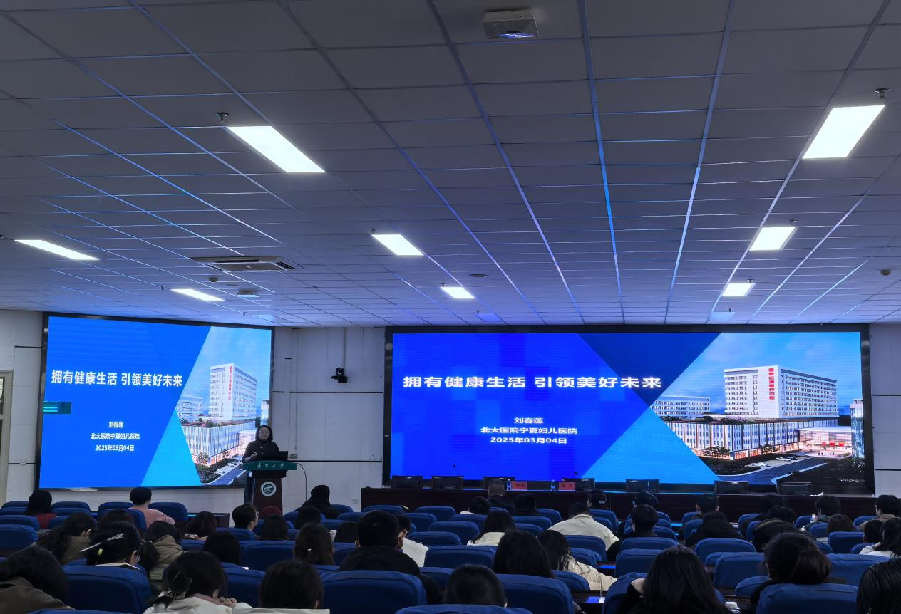 活动特别邀请了北京大学第一医院宁夏妇女儿童医院生殖中心主任刘春莲教授作为主讲嘉宾。刘教授以《拥有健康生活 引领美好未来》为题,详细讲解了女性健康管理、疾病预防、积极心态培养等方面的内容,深入剖析了女性多发病症的成因及预防策略,普及了生殖保健知识,并鼓励大家树立科学健康观念,养成良好生活习惯,积极参与“两癌”筛查,以实现疾病的早期发现与治疗。宣讲过程中,刘教授还与现场师生进行了互动交流,耐心解答大家提出的健康问题。