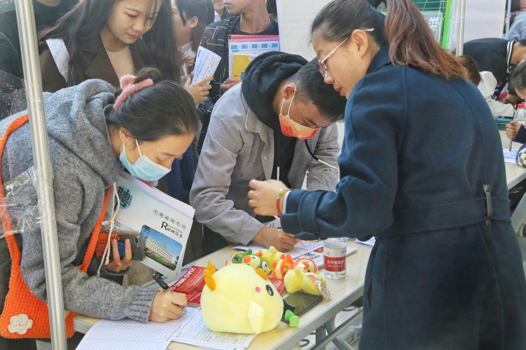 【宁夏大学新闻中心讯 学生处/文 、学生记者:杨蕾 杨燕 刘倬霖 马卫芳/图】10月16日,宁夏大学2022届毕业生校园秋季“双选”洽谈会在怀远校区金波湖畔隆重举办。此次双选会吸引了来自北京、上海、广州、陕西、甘肃等区内外350余家用人单位前来选聘人才,其中嘉兴市六县市区共组织117家高质量企业对口招聘宁夏大学毕业生,涉及工程管理、化学工程与工艺、会计学、电子商务、汉语言文学、法学、软件工程、机械工程、外语、动物医学等100余个专业,为毕业生提供就业岗位11000余个,吸引了宁夏大学、北方民族大学7000余名毕业生前来参加。