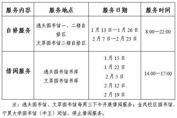 为做好2025年寒假图书借阅等服务保障工作,根据学校《关于放寒假的通知》(宁大办发〔20252号),结合图书馆工作实际,现将图书馆服务工作具体安排通知如下。