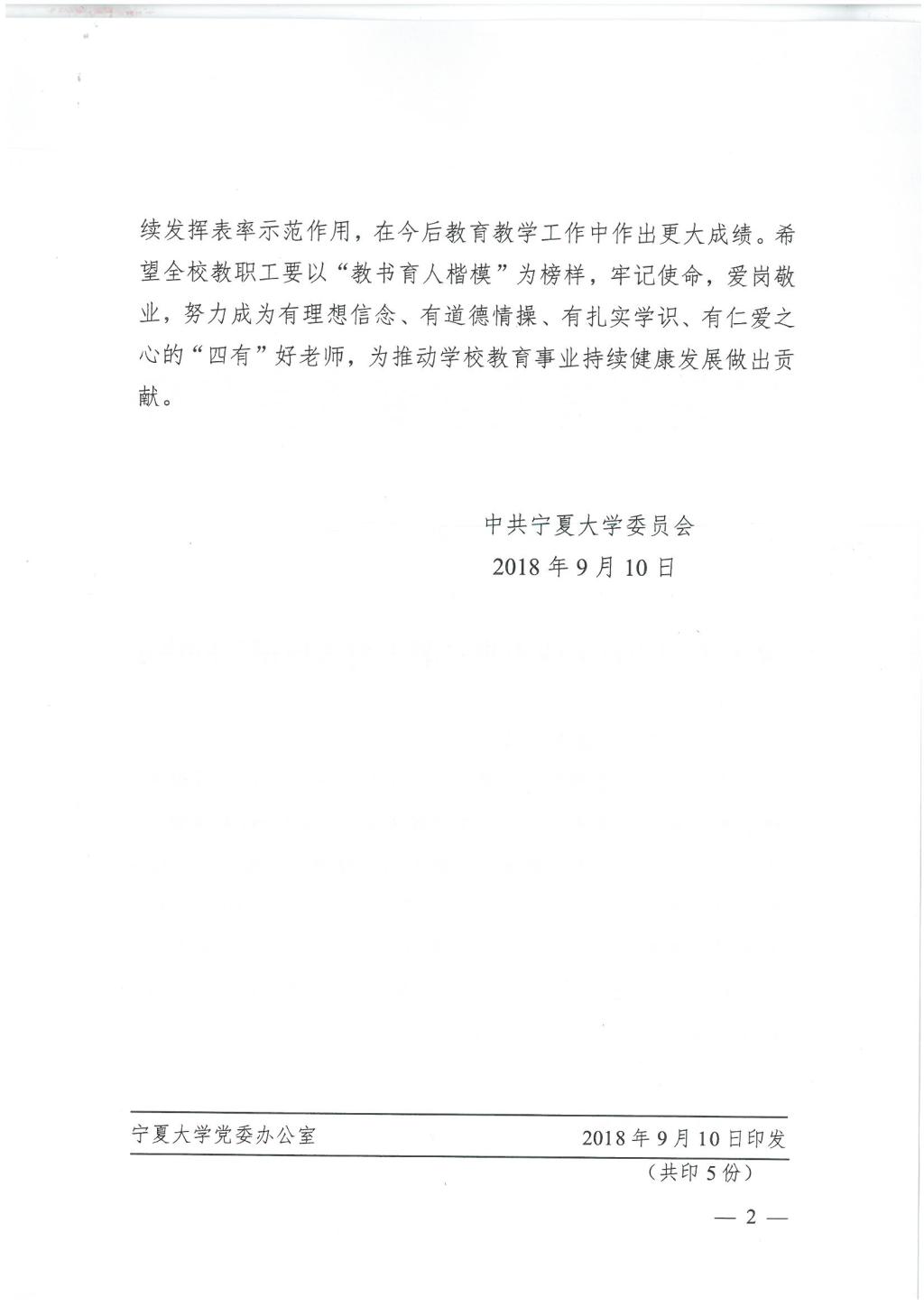 关于表彰宁夏大学首批“教书育人楷模”的决定