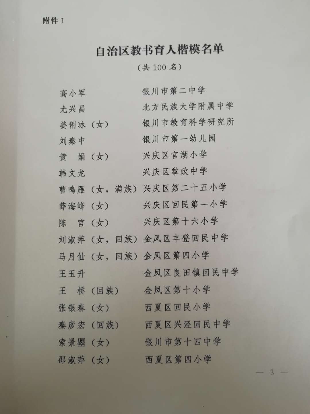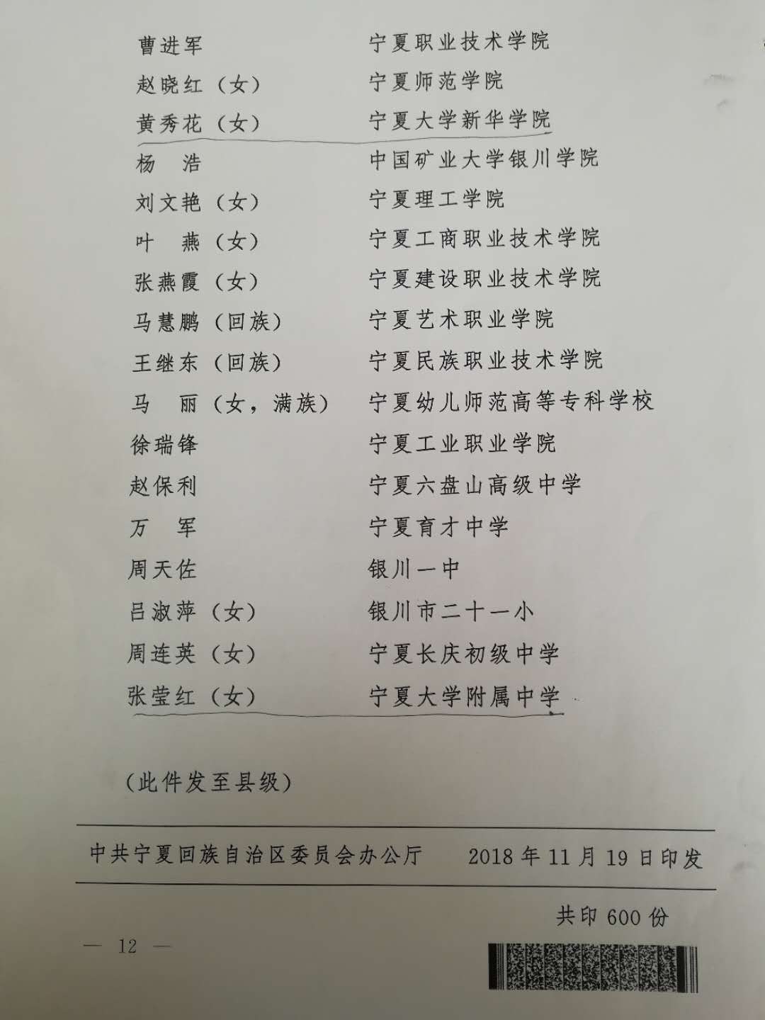 自治区党委 人民政府 关于表彰自治区教书育人楷模和师德标兵的决定(宁党发[2018]38号)