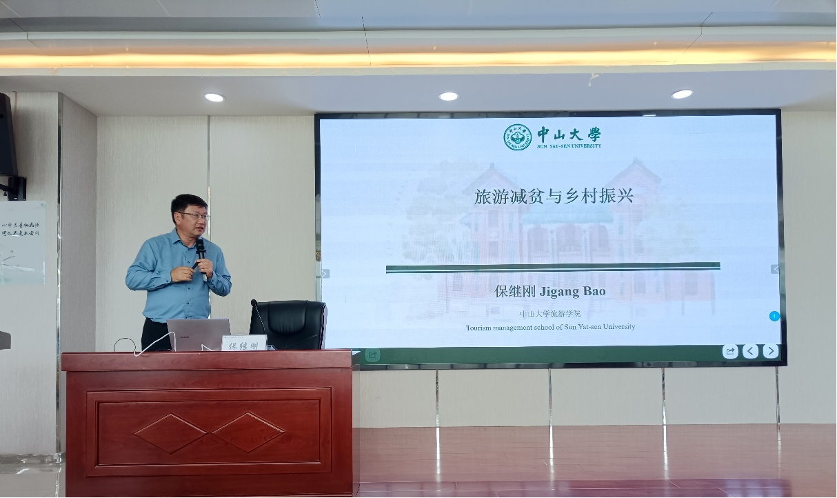 【宁夏大学新闻中心讯 前沿交叉学院】为深入贯彻落实习近平总书记视察宁夏时关于旅游工作的重要指示精神,增强学院学术研究氛围,助力国家一流本科专业建设,9月13日下午,国际旅游研究院会士、教育部长江学者特聘教授、中山大学经济与管理学部副主任保继刚教授应邀为我院师生作《旅游减贫与乡村振兴》专题学术讲座。讲座在惟实楼四楼多功能报告厅举行,讲座由学院执行院长王磊主持。保继刚结合自身学术研究经历以旅游“减贫”...