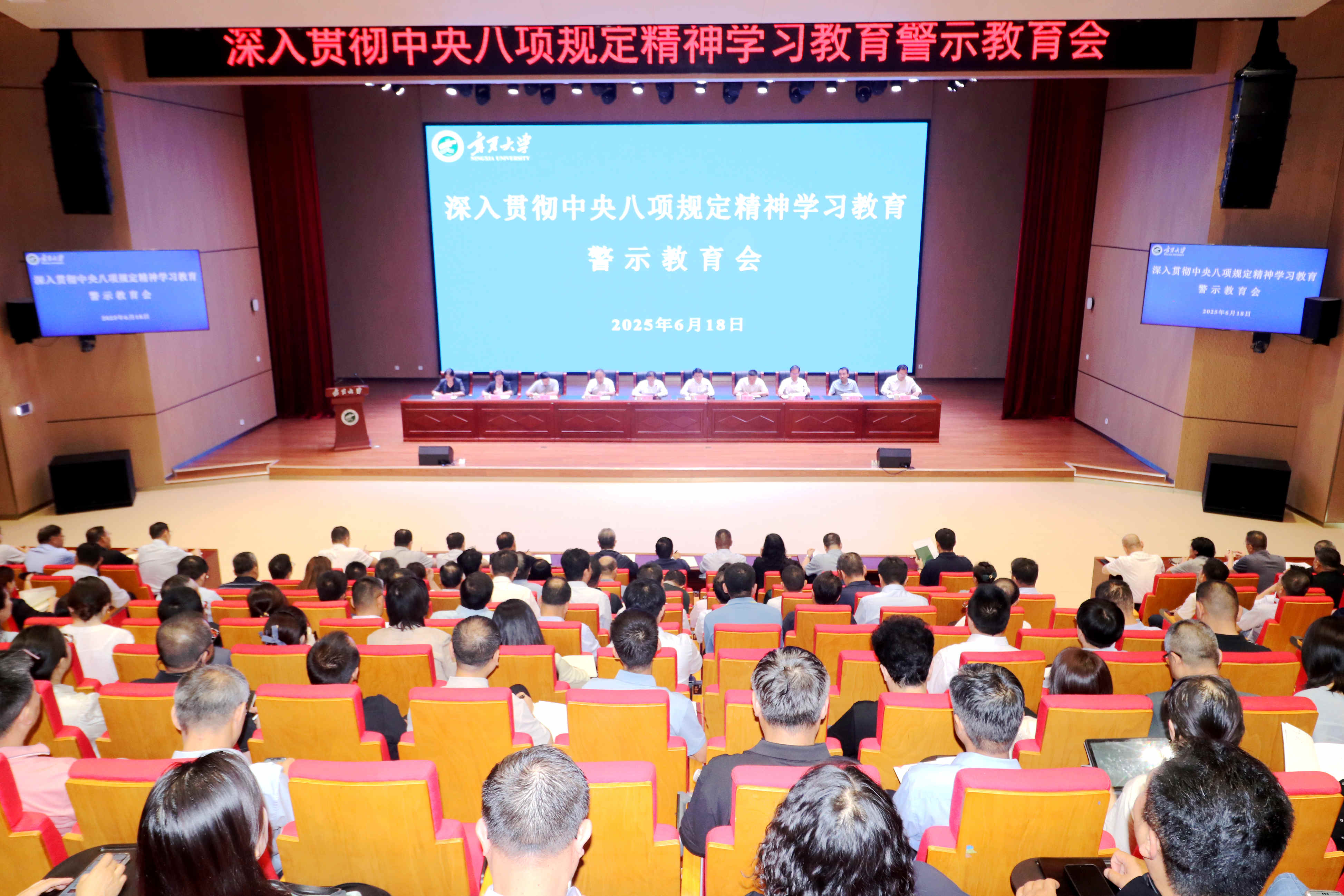 【宁夏大学新闻中心讯 张景/文、图】为持续强化警示震慑,深化以案促学、以案促查、以案促改、以案促治,推动学校深入贯彻中央八项规定精神学习教育走深走实,6月18日,我校在贺兰山校区笃行楼报告厅召开深入贯彻中央八项规定精神学习教育警示教育会。自治区党委第四督导组成员、自治区党委政法委机关党委(人事处)专职副书记(处长)潘彦华到会指导。全体在校校领导参加会议,校党委书记李星主持警示教育会。校党委副书记、校长彭志科传达学习了习近平总书记关于加强党的作风建设的重要论述、《党政机关厉行节约反对浪费条例》、中央党的建设工作领导小组《关于集中整治违规吃喝的通知》精神及自治区党委警示教育会精神。校党委常委、纪委书记马元通报并剖析了全国、全区及学校发生的违纪违法典型案例。党员干部代表李静、张宁、汪文帅、马骏、杨军结合自身工作岗位和通报的典型案例依次作交流发言。李星就进一步推进学习教育、加强作风建设提出具体要求。...