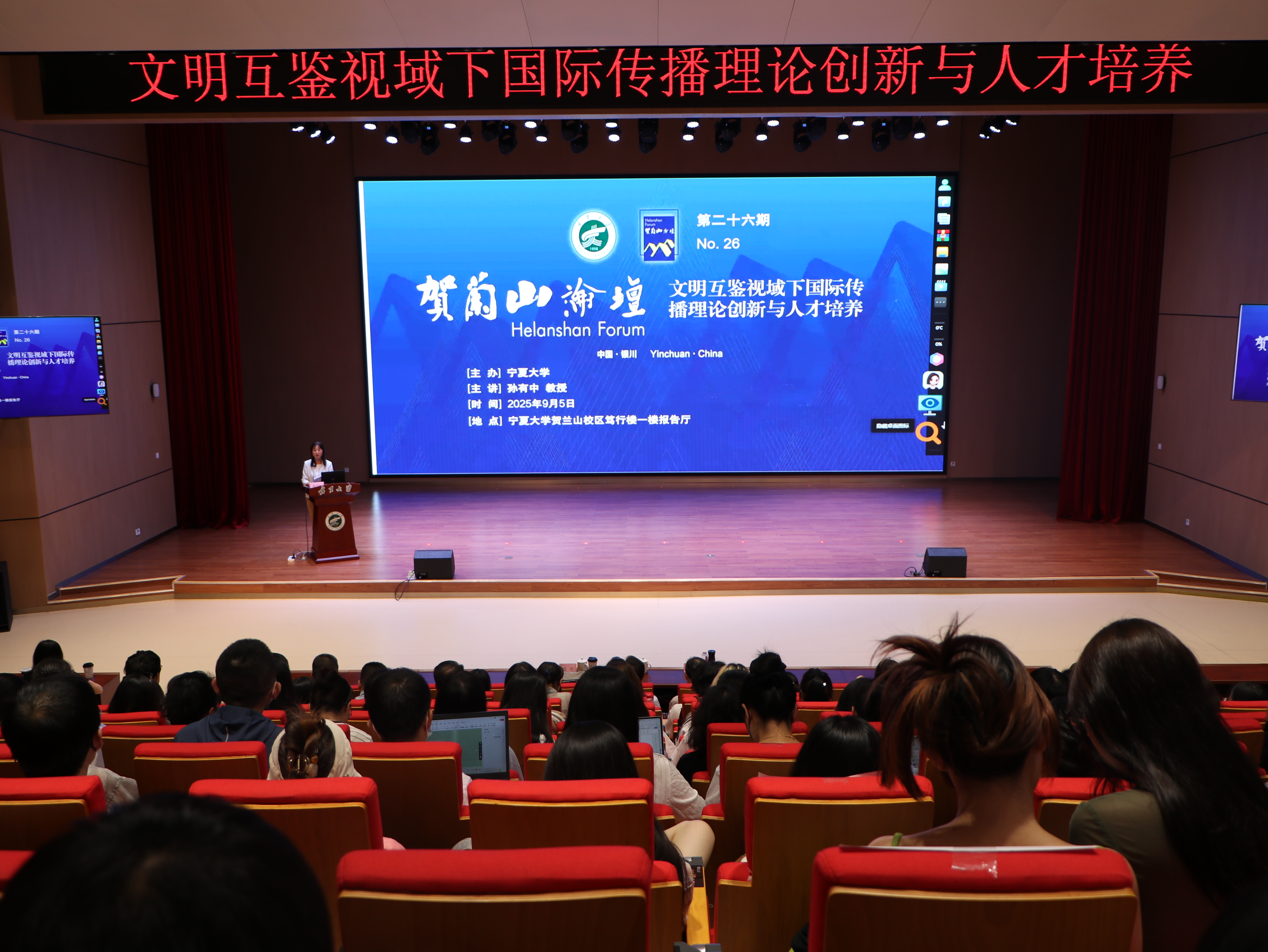 【宁夏大学新闻中心讯 李明花/文、图】为深入贯彻落实习近平总书记关于推动文明交流互鉴、加强国际传播能力建设的重要指示精神,服务国家提升国际传播效能的战略需求,切实增强我校师生服务中国式现代化建设的使命担当与专业能力,9月5日,北京外国语大学原副校长、博士生导师孙有中教授做客我校贺兰山论坛,为师生作题为《文明互鉴视域下国际传播理论创新与人才培养》专题报告,校领导马元、聂丹、杨文法参加报告会,校党委常委、副校长聂丹主持报告会。会前,校党委书记王宏伟会见了孙有中教授。会上,孙有中结合自身经验,以深厚的学术造诣和广阔的国际视野,从国际传播的定义和现状、中国共产党的文明互鉴观、探索中国式国际传播、创新国际传播人才培养模式等几个方面,系统剖析了国际传播的定义框架与全球传播发展现状,从中国共产党的文明互鉴观宏阔而又深刻的视角出发,深入阐述了中国式国际传播的理论创新路径。孙有中表示,中国式国际传播应秉持平...
