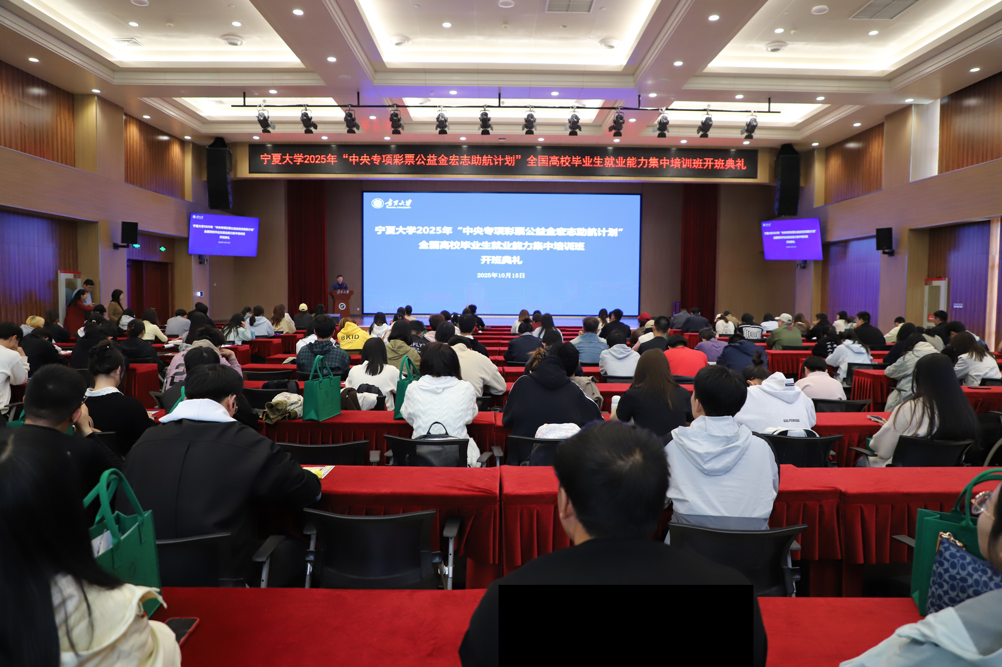 【宁夏大学新闻中心讯 姬晓姗 文/图】为贯彻落实党中央、国务院决策部署,强化困难群体高校毕业生就业精准帮扶,帮助学生提升综合素质和就业能力,促进高质量充分就业,10月15日,2025年“中央专项彩票公益金宏志助航计划”毕业生就业能力培训班开班仪式在我校贺兰山校区笃行楼三楼报告厅举行。校党委常委、副校长黄河参加开班仪式。党委学生工作部(学生处)部(处)长马正亮对《宁夏大学关于开展2025年宏志助航计划就业帮扶项目的通知》作了传达并对集中培训做出安排部署。授课教师代表、求是书院副院长张振霞在发言中表示,教学团队将精准施策,构建全方位课程体系,通过“理论+案例+实战”相结合的教学模式,助力学生提升求职能力。学生代表、机械工程学院(鼎新书院)金浩楠在发言中感谢学校为学子搭建赋能平台,他号召全体学员珍惜机会、积极参与、学以致用,将“助航”化为“远航”力量,在奋斗中书写青春篇章。黄河对培训学员提出具体要求。他指出,...