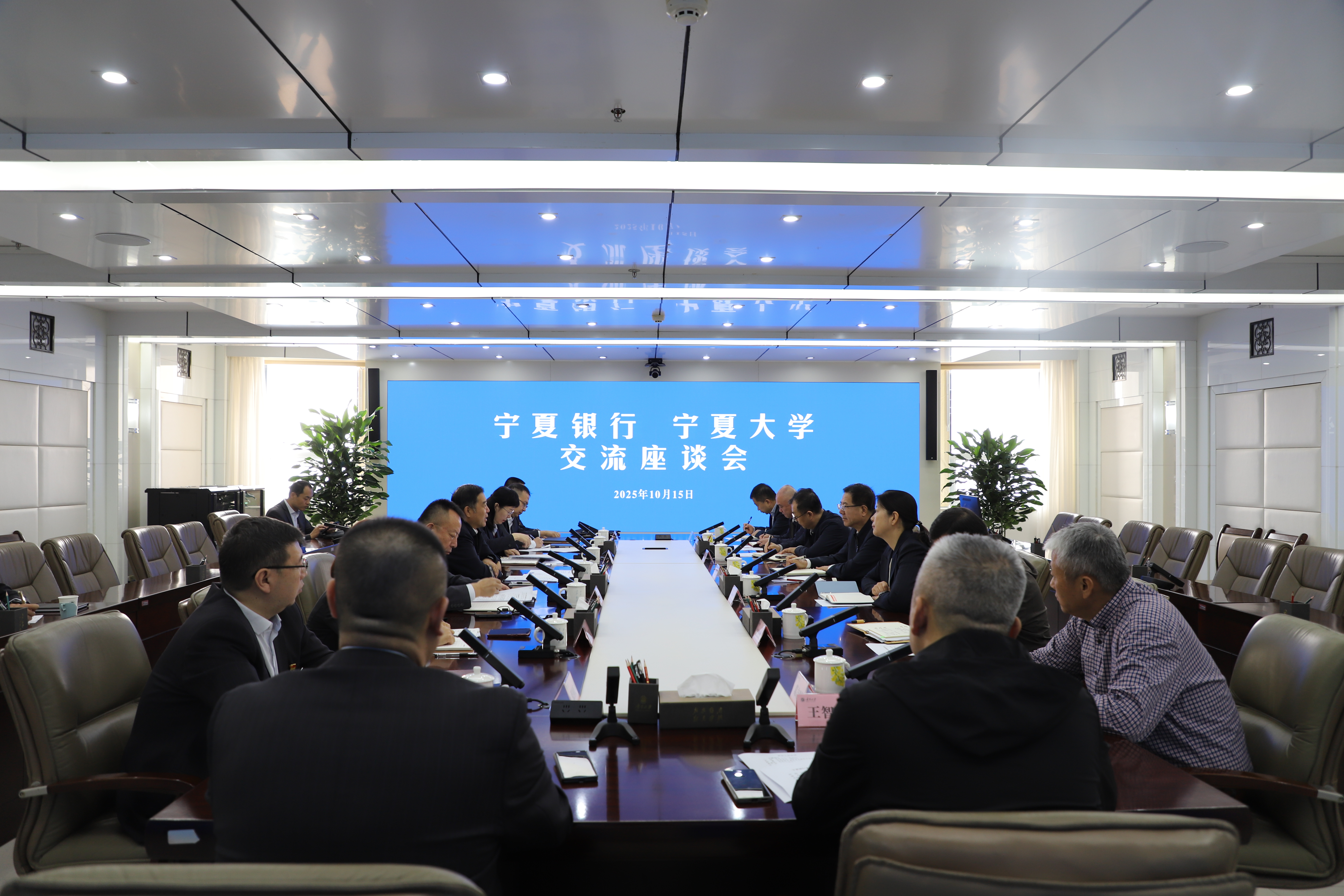 【宁夏大学新闻中心讯 王文娣/文、图】10月15日上午,宁夏银行党委书记、董事长吴琼,党委委员、副行长韩睿一行来校交流座谈。校党委书记王宏伟,校党委常委、副校长冯秀芳参加座谈会。王宏伟对吴琼一行的到访表示欢迎,对宁夏银行长期以来给予宁夏大学发展的支持表示感谢,并介绍了学校近年来的发展情况。他指出,宁夏银行作为地方银行,为自治区经济社会发展作出了积极贡献,也与宁夏大学具有良好的合作基础,希望双方在资源共享、优势互补中实现互利共赢,共同服务地方发展大局。吴琼对宁夏大学的办学成就表示赞赏,并简要介绍了宁夏银行的经营发展情况。他表示,宁夏银行将充分发挥自身资源优势,在金融服务、信息化建设、人才培养等领域与宁夏大学开展更深层次合作,为学校高质量发展提供精准金融支撑,切实满足师生多元化金融服务需求。与会人员围绕信息化建设、校园金融服务、智慧校园共建、人才培养等方面作了交流。宁夏银行各金融部及新市区支行相...